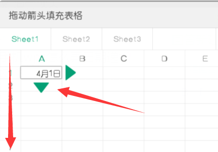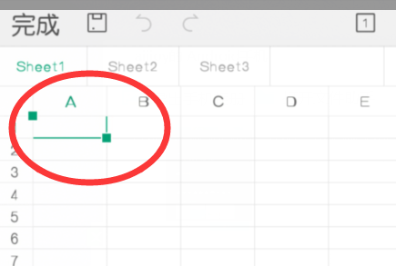 4、A1单元格的四周出现了下拉箭头,用手指点击按住箭头位置,拖动箭头向下填充表格。