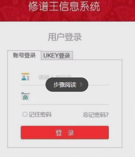 1.输入自己的家谱制作软件修谱王软件帐号,没有帐号的用户在下方注册