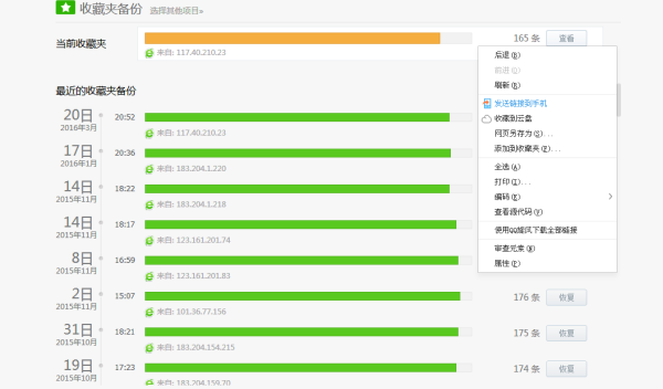 360的收藏夹是自动备份的,人为无法操作,也无法删除。图中没有删除按钮,只有恢复才做可用,故无法删除。
