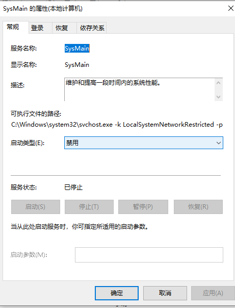 5,返回到“SYSMain 的属性”的对话框,点击“启动”按钮来运行该服务,再点击下方的“确定”按钮即可。