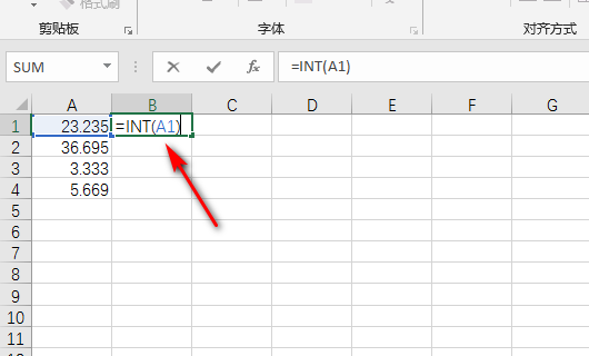 2、打开Excel表格后,输入公式=INT(A1)。