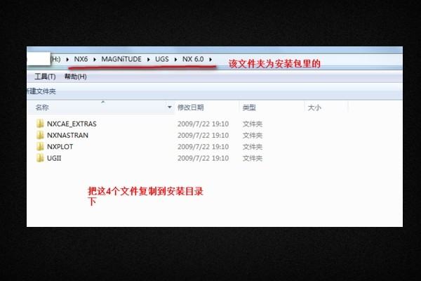 5,将安装包NXCAE_EXTRAS,NXNASRAN,NXPLOT和UGII的四个文件复制到安装目录。然后就完成了;