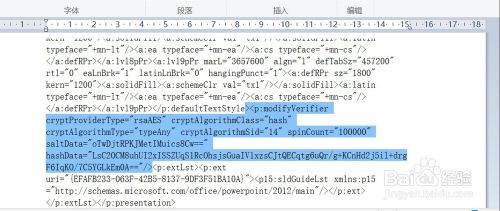 打开之后将进度条拖到文章末端,找到〈p:modifyVerifier.../〉这样的一个分段,删除它。