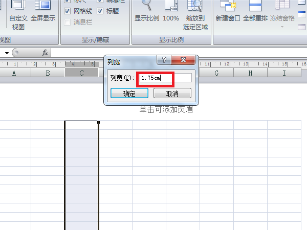 4、然后就可以以厘米为单位设置列宽了,如图所示。