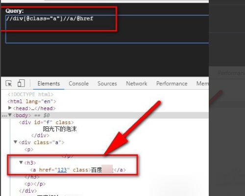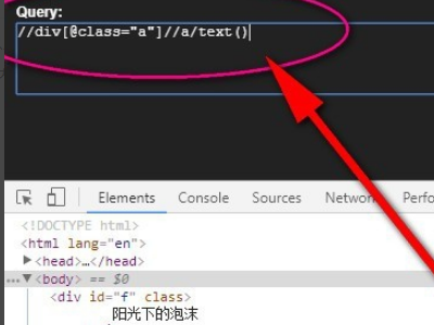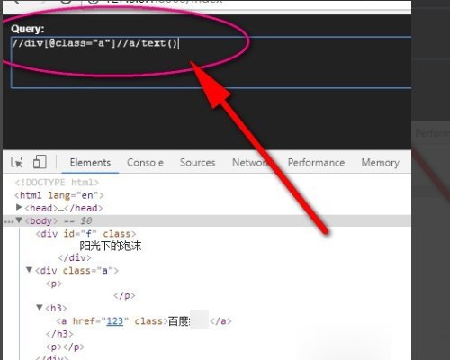 4、那么如果想找div下面的a标签怎么办,同样,还是用//,这样div下面的非a标签就会被跳过,直接去找a标签。