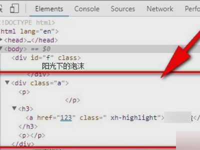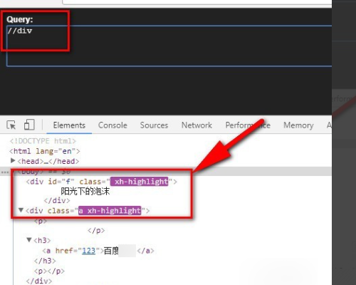 7、如图,斜杠/表示的是获取子元素,比如div下面有两个子元素p,那么//div[2]/p获取的就是第二个div的子元素p。这样简单的xpath就分析完了。