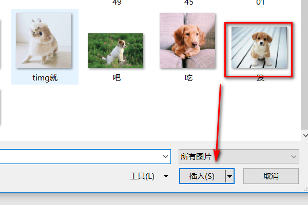 2、选择多张需要插入页面中的图片后点击选中其中一张图片。