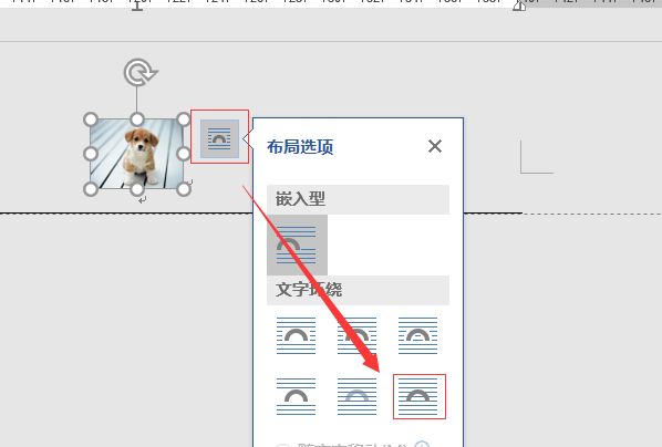 5、点击图片右边的按钮,将文字环绕类型设置为“浮于文字上方”。