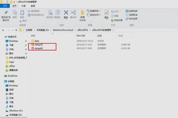2、打开“office2016安装程序”这个文件夹,开始安装,如果是32位就选择setup32,如果是64位就选择setup64。