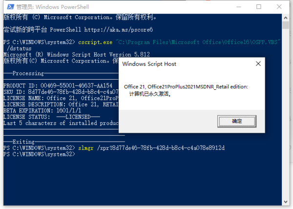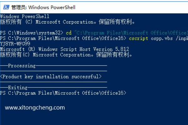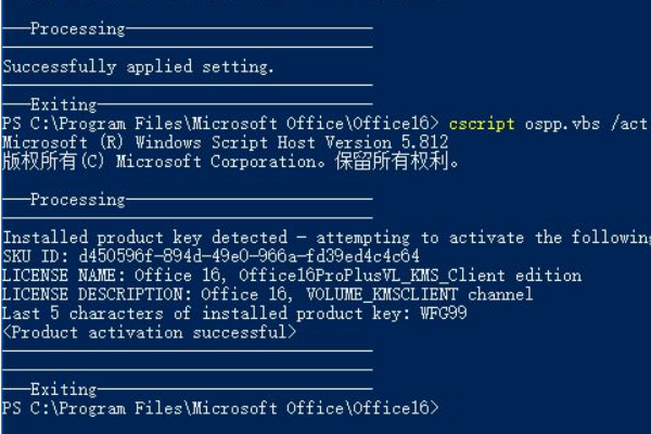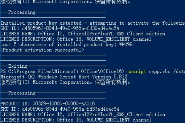 6、最后执行这个命令,cscript ospp.vbs /act按回车激活office2016。