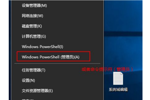 2、接着右键点击开始图标,选择Windows PowerShell(管理员),或者命令提示符(管理员)。