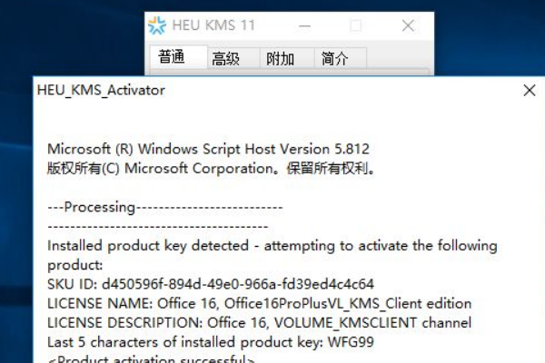 2、等待一段时间之后,会提示Product activation successful,表示激活成功,kms激活一般是180天期限,到期再次激活即可,也可以在【高级】里面选择安装自动续期,所以要保留此软件。激活过程中可能失败,再次点击激活按钮就可以。