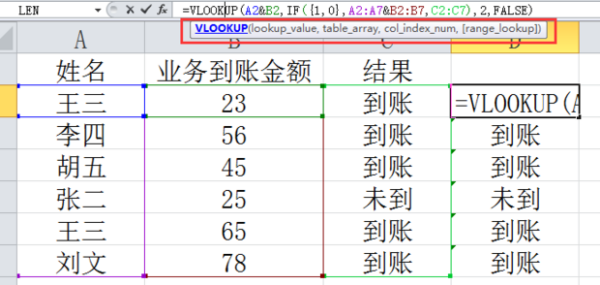 3、VLOOKUP(查找值,在哪里找,找到了之后返回第几列的数据,逻辑值),其中,逻辑值为True或False。这是vlookup函数语法的通俗版解释。