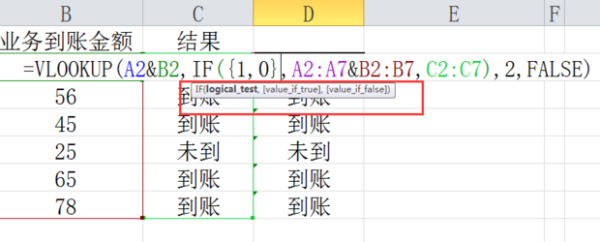 4、IF({1,0},相当于IF({True,False},用来构造查找范围的数据的。而IF({1,0},A2:A7&B2:B7,C2:C7)表示将A列和B列的数据合并为一列;将C列数据作为一列。这样查找区域就是俩列了。