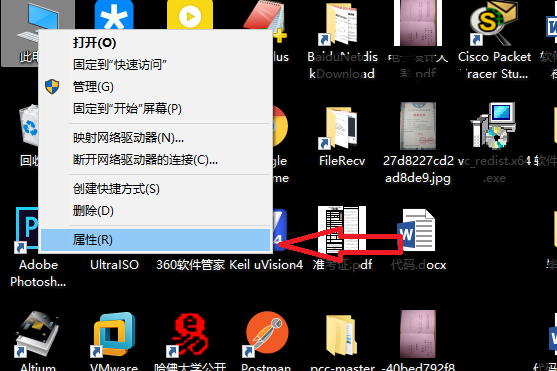 1. 在桌面用鼠标右键点击我的电脑,然后点击属性