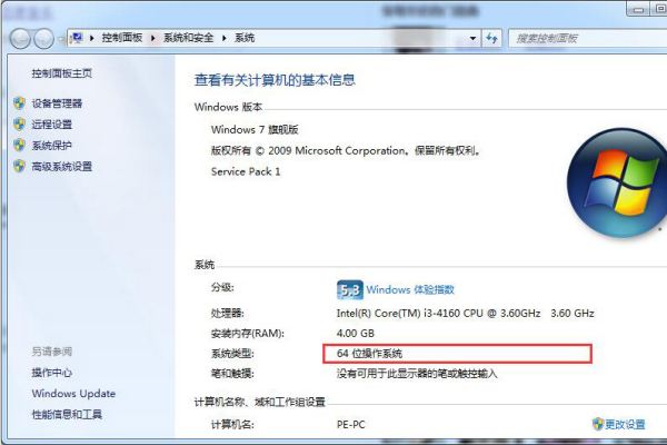 2. 在属性中查看电脑系统是32位还是64位,查看的位置如下图