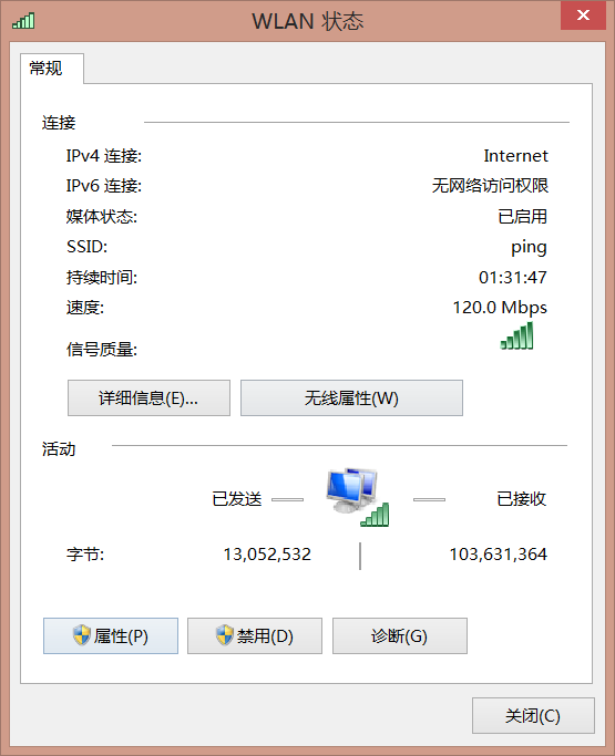 2.点击正在连接的网络(如我的是“wlan(PING)”)