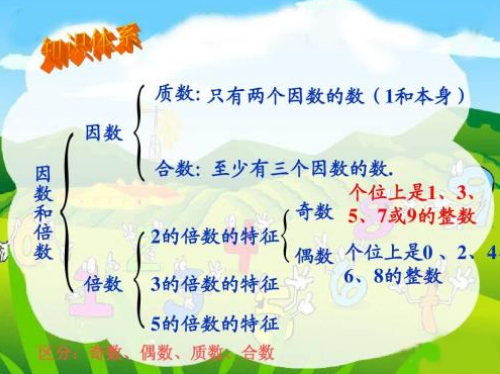 假如a*b=c(a、b、c都是整数),那么我们称a和b就是c的因数。需要注意的是,唯有被除数,除数,商皆为整数,余数为零时,此关系才成立。反过来说,称c为a、b的倍数。在研究因数和倍数时,不考虑0。