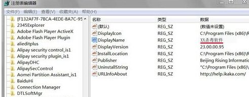 一、某程序卸载以后,注册表中残留有信息的处理,如我们卸载的是XX杀毒软件。