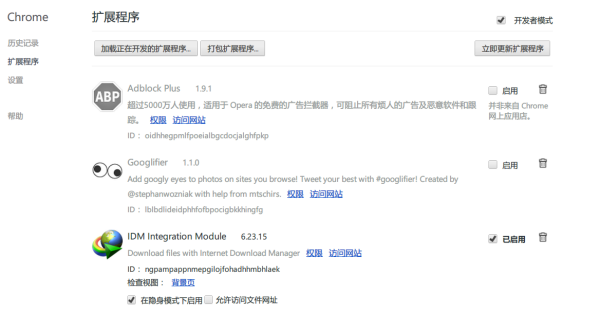 如果想暂时停用某个谷歌浏览器插件可以去掉已启用前面的对钩。