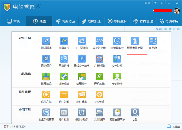 安装运行腾讯电脑管家后可以很醒目的看到杀毒选项