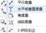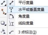 使用度量工具可以方便快捷地测量出对象的水平、垂直距离以及倾斜角度等。 其中,平行度量工具可以绘制倾斜的尺寸标注、 水平或垂直度量工具允许用户绘制水平或垂直方向的尺寸标注、 角度量工具可以准确测量出所定位的角度、 在工具箱中单击“水平度量工具”右下角的小黑三角,选择所需要的coreldraw尺寸标注格式