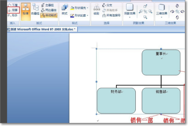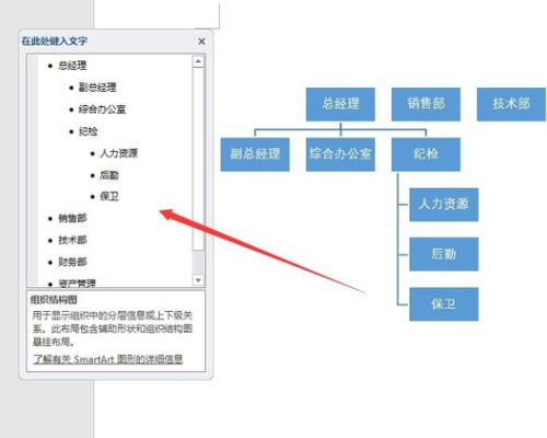 在WORD中的Smartart中插入了组织架构图,如图下面有个左边的格子不知道如何转移到右边,请教各位大侠!