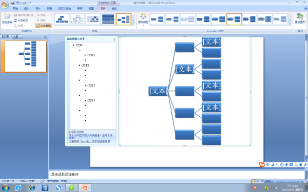 在2007PPT里面用SmartArt来画组织机构图,怎么用让里面每个框框的大小一样?