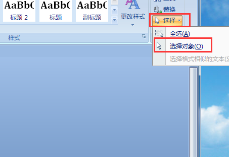 1、首先,进入“开始”选项,单击“选择”,然后在下拉菜单中单击“选择对象”选项,如下图所示,然后进入下一步。