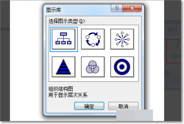新建空白文档之后,我们点击上方的插入选择smartart,然后选中一个图示类型即可。然后点击确定。