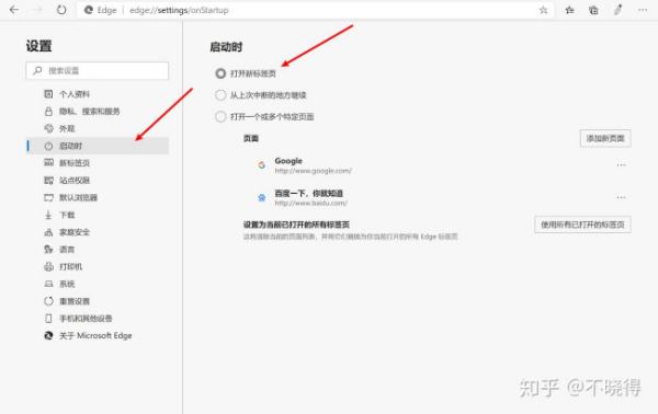 到这里一般浏览器重新启动都可以修改成为自己心仪的网址导航了,但是Edge浏览器如果重新启动发现还是未更改,需要在Edge浏览器的设置里更改一下: