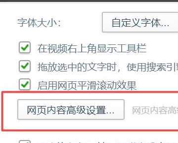 4、接着在右侧栏内找到网页内容高级设置,点击进入。