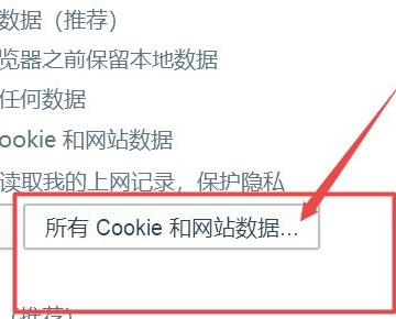 5、这时界面跳转,在cookie处,找到点击所有cookie和网站数据。