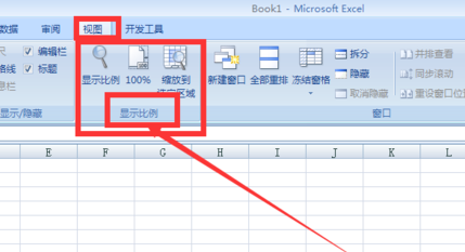 3.点击视图工具按钮,在子菜单工具栏中找到显示比例。