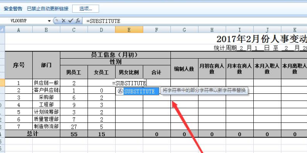 3、然后我们在对应的单元格中输入公式=SUBSTITUTE。