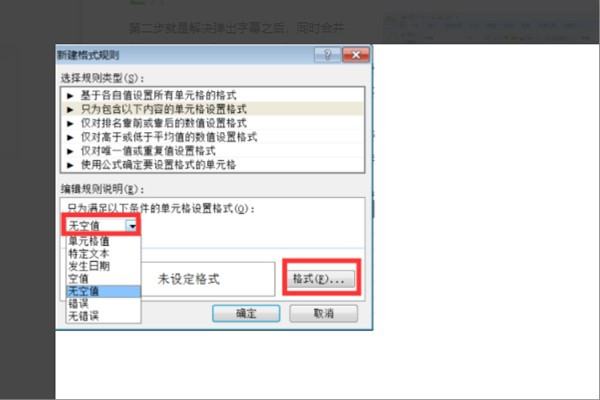 3、接着,完成上述步骤后,依次单击“无空值”-->“格式”-->“确定”按钮,如下图所示,然后进入下一步。