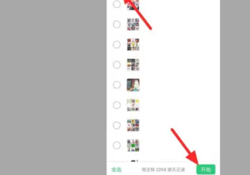 5、在聊天记录迁移界面,点击选择需要迁移的聊天。