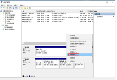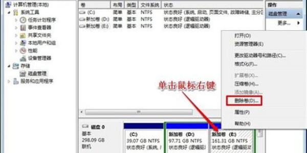 3、将鼠标移动到一个磁盘上,单击右键,选择“删除”