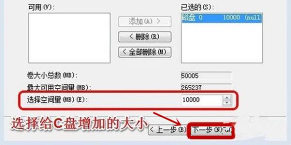 3、系统会自动计算出最大扩容量,没特殊扩展需求点击下一步,完成即可。红框处可以手动输入扩展的容量。