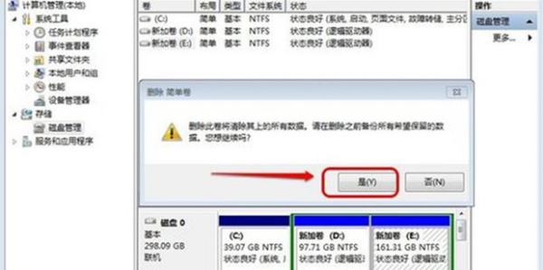2、如果已经备份了电脑所有数据,点击“是”,将D盘删除即可。