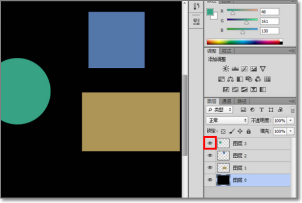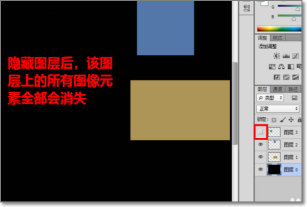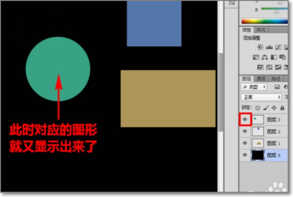 3,当然,如果想重新显示图层,则可以在刚才小眼睛的位置再次单击,这时,图层就会重新显示出来了。