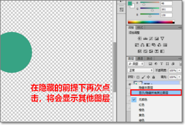 五、最后右键点击任一图层小眼睛处,菜单中点击“显示本图层”。