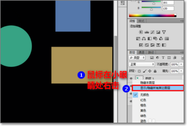 6,同样的,如果想将这些隐藏的图层重新显示出来,则可以在刚才的小眼睛处再次右击鼠标,最后在弹出的菜单中点击“显示/隐藏所有其他图层”就可以了。