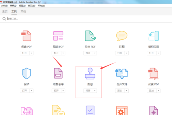 1、首先在电脑桌面打开任意一个PDF文档,或者打开需要加盖印章的PDF文件,打开PDF文档后,点击工具菜单,在工具菜单中找到图章选项;