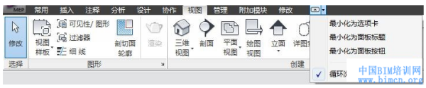 除了默认的最大方式,还有其他三种,共四种样式。图就不上了,我们可以自己切换下看看。快捷键用的熟的话基本可以使用最简的方式,减少对屏幕的占用。最后,在工具选项板的视图面板里,还有个“用户界面”命令,通过它可以进行“项目浏览器”、“系统浏览器”、“属性”、“状态栏”等等的设置。