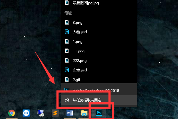 可以在按住键盘上的“Shift”键的同时右击任务栏上的图标,然后将图标发送到桌面,再将任务栏上面的图标取消固定。
