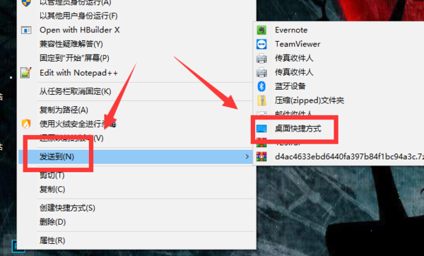2、在展开的菜单中点击“发送到”按钮,然后点击“桌面快捷方式”按钮将任务栏上的图标发送到桌面上: