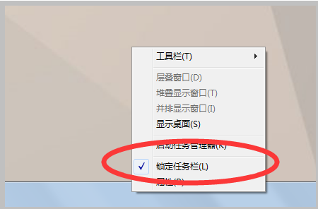 2.首先,右键点击任务栏的空白区域,点击“锁定任务栏”取消原来的锁定,如下图。