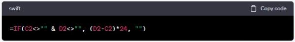 =IF(C2<>"" & D2<>"", (D2-C2)*24, "")