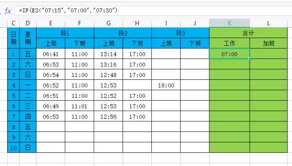 这样子呢只要在7:15前打卡的都默认为7:00,然后7:15之后打卡默认为7:30(实际上万一8:00甚至更晚打卡的呢?这个需要根据公司考勤纪律来)